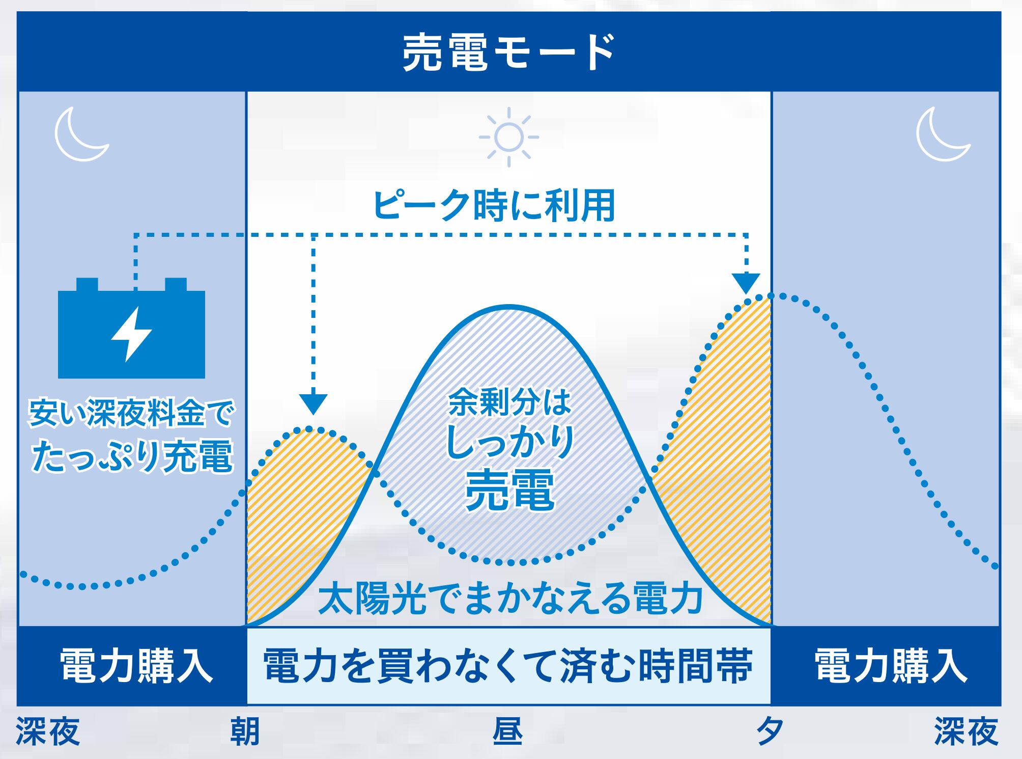 一般家庭での平均的な一日の使用電力量を約10kWhと仮定して、4.9kWhだと約半日、14.9kWhだと約1日半、停電で電力供給が止まってもいつもの生活が行えます。